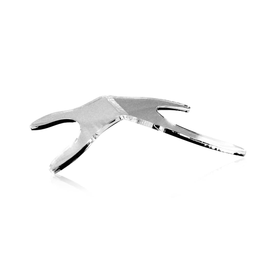 Hand held retractor for upper and lower arch photography. Cold sterilization is recommended for extended life, but can be autoclaved up to 250ºF.